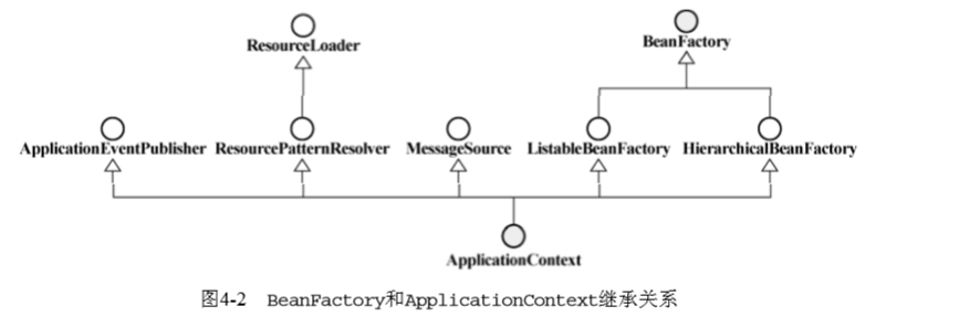 通过 图4-2,我们可以对BeanFactory和ApplicationContext之间的关系有一个更清晰的认识。